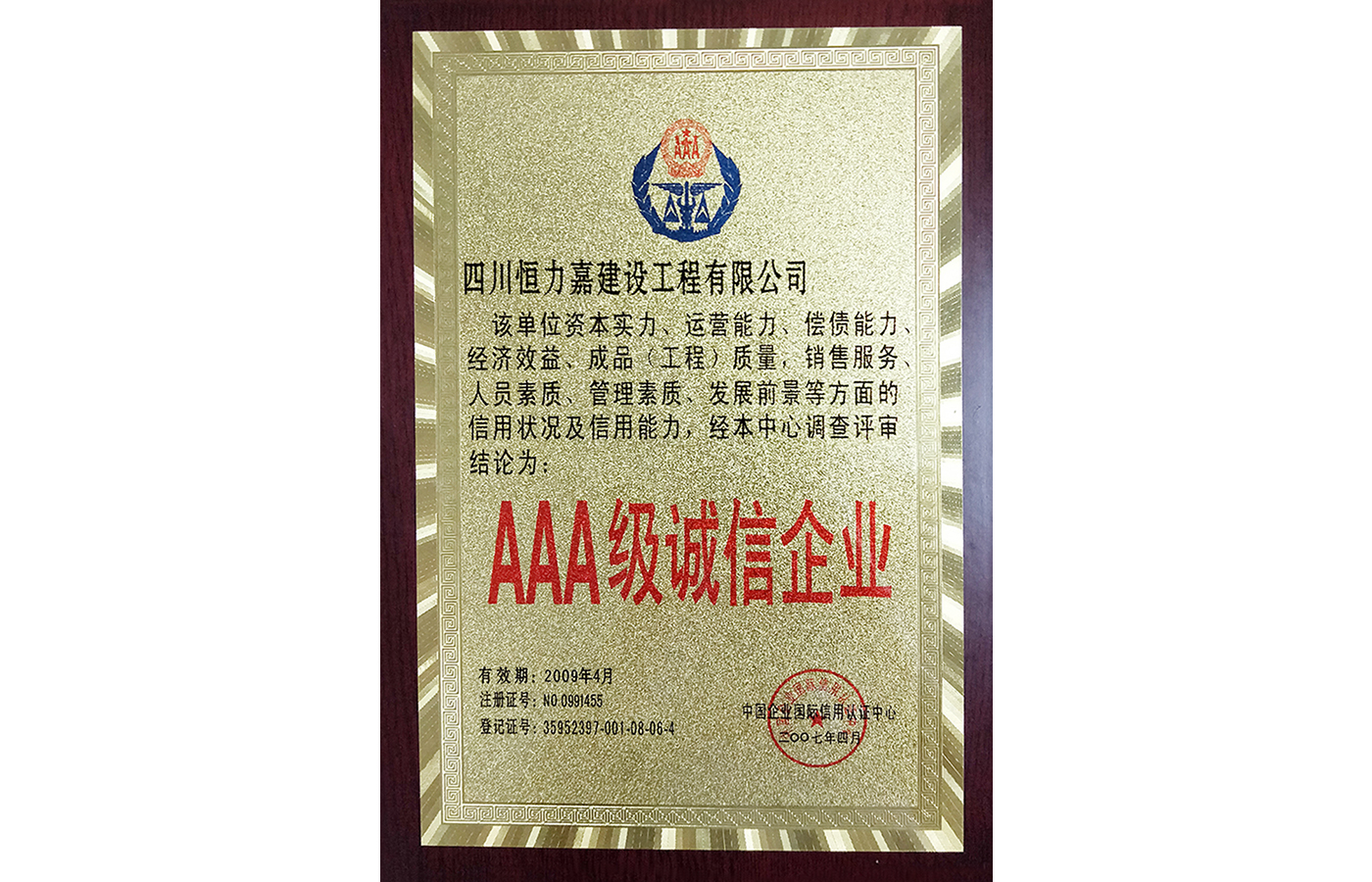 2009年10月AAA級(jí)誠(chéng)信企業(yè)