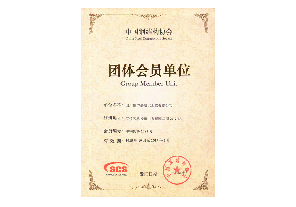鋼結(jié)構(gòu)會(huì)員證書(shū)